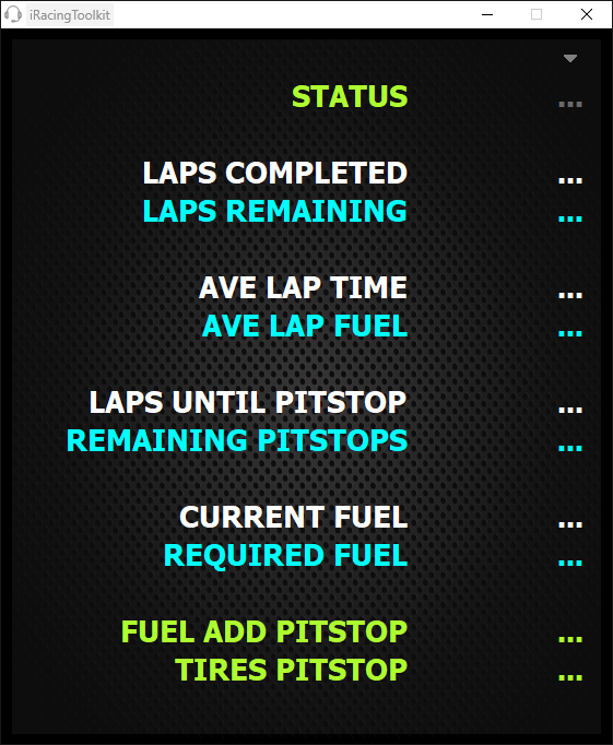 That’s all you need to get started. You can now drive out of pit lane or start your race and iRacingToolkit will start displaying all the data on the dashboard and send you status messages via text chat. Full details on all the apps options can be found below.